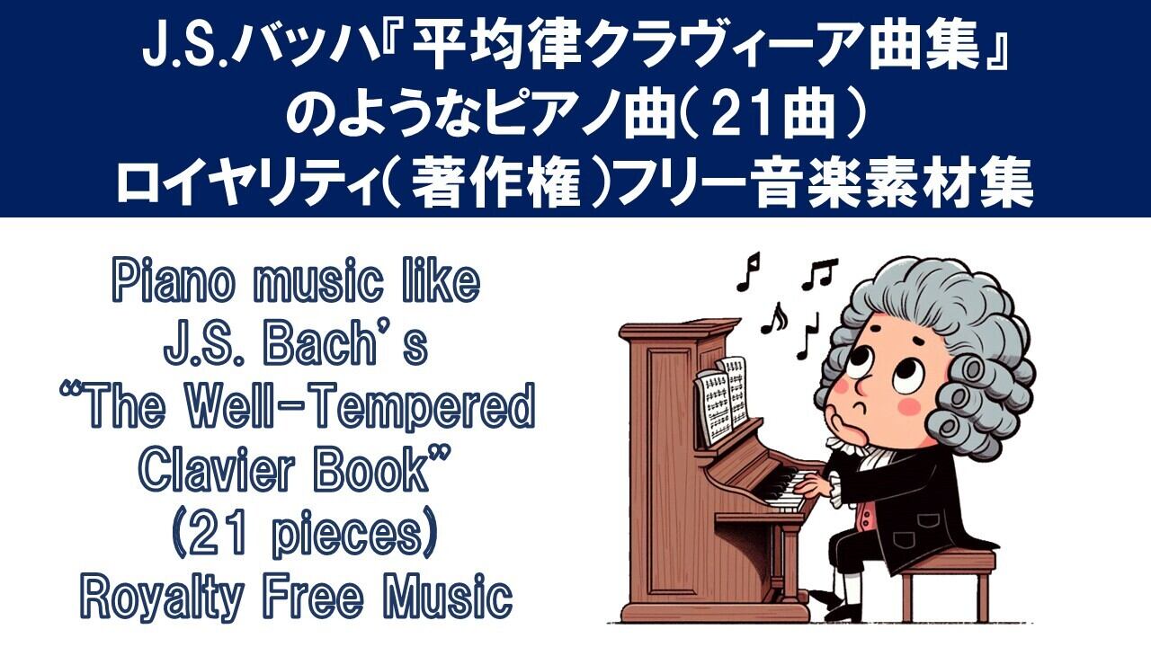 J.S.バッハ『平均律クラヴィーア曲集』のようなピアノ曲のロイヤリティ(著作権)フリー音楽ミュージック素材集を21曲収録しています。